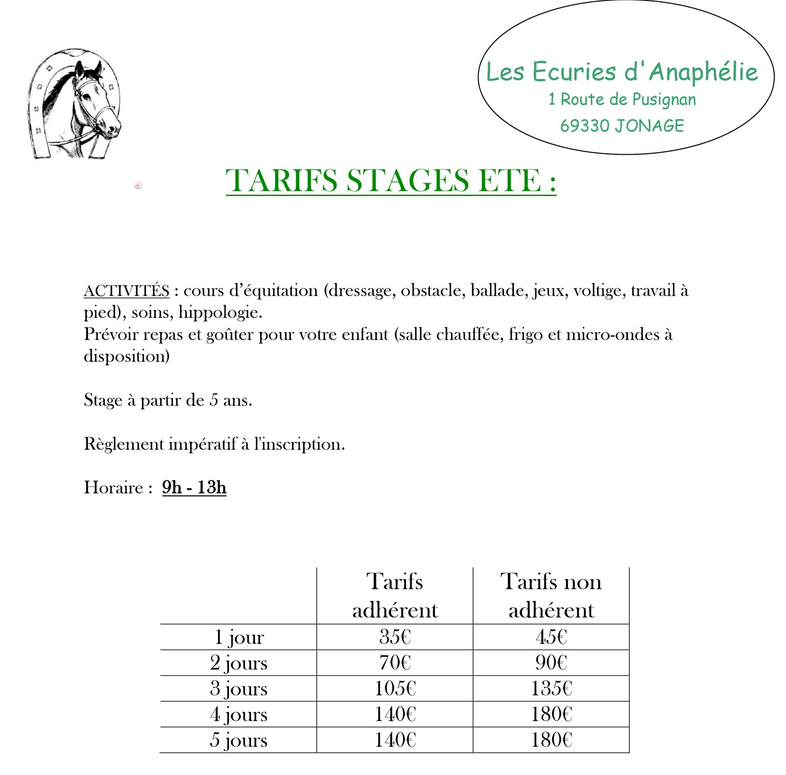 Stage d’été : du lundi au vendredi de 9h – 13h en juillet
